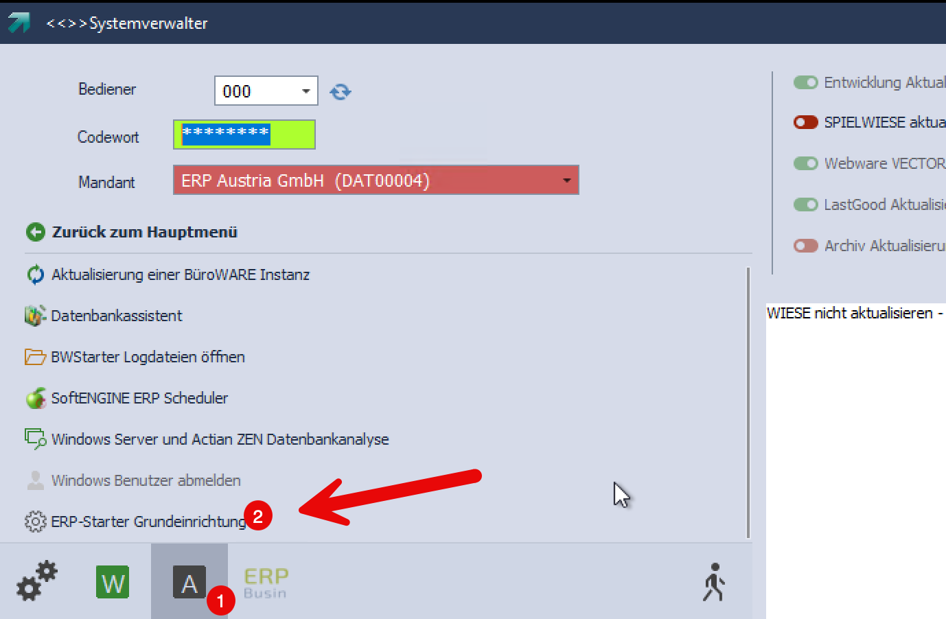 Starten Sie den ERP-Starter und klicken Sie auf "A" und anschließend auf ERP-Starter Grundeinrichtung.